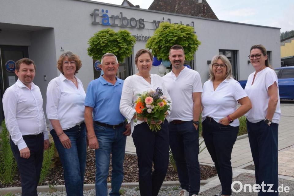 Ein besonderes Arbeits-Jubiläum konnte in den vergangenen Tagen Marion Altmann vom Versicherungsbüro Färbos in Schmidmühlen feiern. Seit der Gründung des Versicherungsbüros vor 30 Jahren ist sie dort als Sachbearbeiterin tätig. In der heutigen ist dies schon etwas Besonderes, wenn man auf langjährige Mitarbeiter bauen kann, so die beiden Inhaber des Maklerbüros Färbos, Paul Färber, der ebenfalls schon seit 30 Jahren Leiter des Versicherungsbüro ist und sein Sohn Thomas Färber. Für Seniorchef Paul Färber ist es aber auch ein Zeichen dafür, dass sich seine Mitarbeiter in der Firma wohl fühlen und einen sicheren Arbeitsplatz schätzen. Seit 21 Jahren ist Sandra Braun bei Färbos-Vilstal tätig und seit 23 Jahren Sonja Fleischmann. Dazu gratulierten die beiden Inhaber des Maklerbüros Paul Färber und dessen Sohn Thomas Färber zu diesem besonderen Jubiläum.