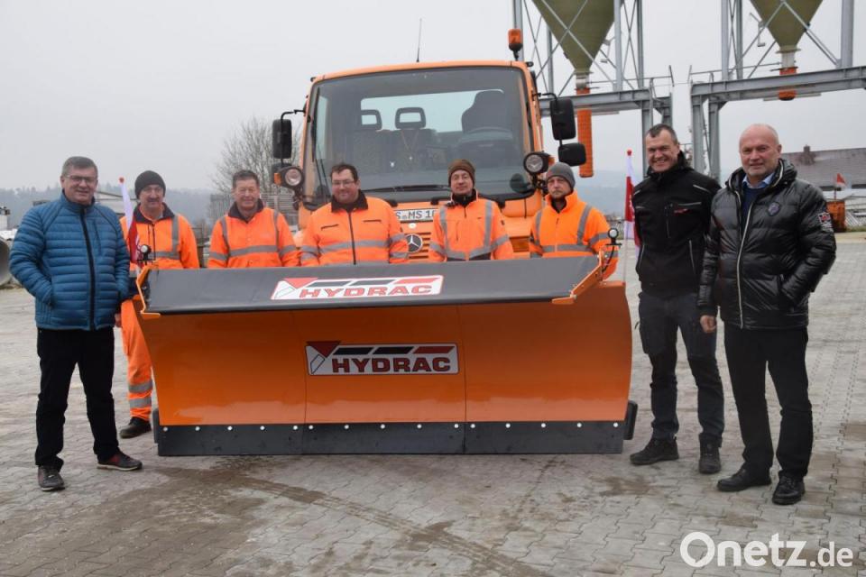 Die Sicherheit auf den gemeindlichen Straßen ist dem Markt Schmidmühlen viel Geld wert, heißt es in einem Bericht an die Presse. Mit einem neuen Schneeräumschild für den gemeindlichen Unimog hat der Markt Schmidmühlen die Effizienz des Winterdienstes ein gutes Stück gesteigert, sagte Bürgermeister Peter Braun bei der Übergabe. Gerade rechtzeitig, um gegen weitere Schlechtwetterfronten mit Eisregen, Schnee und Glätte, wie an den Feiertagen geschehen, anzugehen. Wie Bürgermeister Peter Braun sagte, ist es wichtig, dass die Bauhofmitarbeiter mit gutem Gerät ausgestattet sind, um die Winterdienstarbeiten effektiv zu erledigen. Ausgegeben hat der Markt dafür gut 17000 Euro. Michael Schuierer von der Firma Landtechnik Schuierer und Anton Gut von der Firma Hydrac übergaben im gemeindlichen Bauhof die Gerätschaft mit einer Einweisung für die Bauhofmitarbeiter.160 Tonnen Streusalz sind in den beiden Silos im Bauhof eingelagert, sagte Bürgermeister Peter Braun. Pro Winter gibt der Markt Schmidmühlen zwischen 60 000 bis 70 000 Euro je nach der Winter-Intensität aus, so Braun.