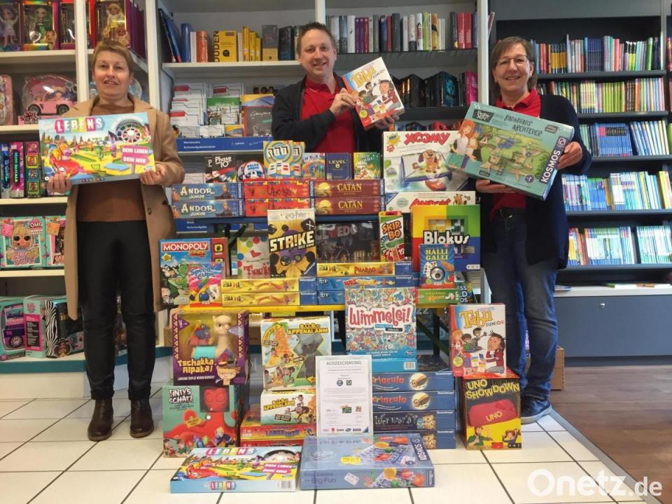 Ann-Britt und Bernhard Nußstein überreichten der Leiterin der Mittagsbetreuung an der Grundschule Schmidmühlen, Marion Härtl, im Rahmen des Projekts "Spielen macht Schule auch am Nachmittag" eine komplette Spiele-Ausstattung, die 66 Spiele im Gesamtwert von über 1800 Euro umfasst. Die Initiative, die sich speziell an die Einrichtungen richtet, die eine Nachmittagsbetreuung für Grundschulkinder anbieten, fördert so das klassische Spielen, denn: "Spielen macht schlau". Die Mittagsbetreuung an der Grundschule Schmidmühlen war dem Aufruf der Initiative gefolgt und bewarb sich erfolgreich um ein hochwertiges Spielepaket. Die Initiative "Spielen macht Schule - auch am Nachmittag" wurde bereits zum achten Mal vom Deutschen Verband der Spielwarenindustrie (DVSI) und dem Verein "Mehr Zeit für Kinder" als sinnvolle Erweiterung von "Spielen macht Schule" ausgeschrieben.