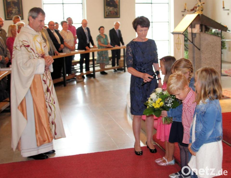 Als Pfarrer Werner Sulzer in die Pfarrkirche einzog, hatten bereits die Kindergartenkinder Aufstellung genommen und begrüßten ihn mit dem Lied „Dieser Tag soll fröhlich sein“. Dann gab es Blumen für den Pfarrer. „Ich kann mich genau noch an den Tag der Priesterweihe erinnern“, sagte der Geistliche. "Auch daran, dass dieser Tag eine Freude war und ich hatte Herzklopfen wie ein Brautpaar bei der Eheschließung."