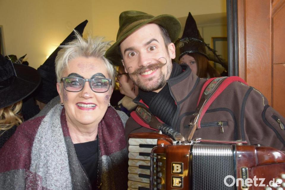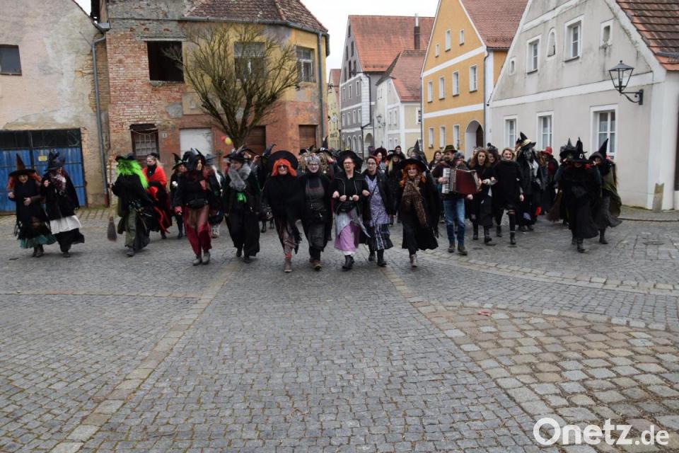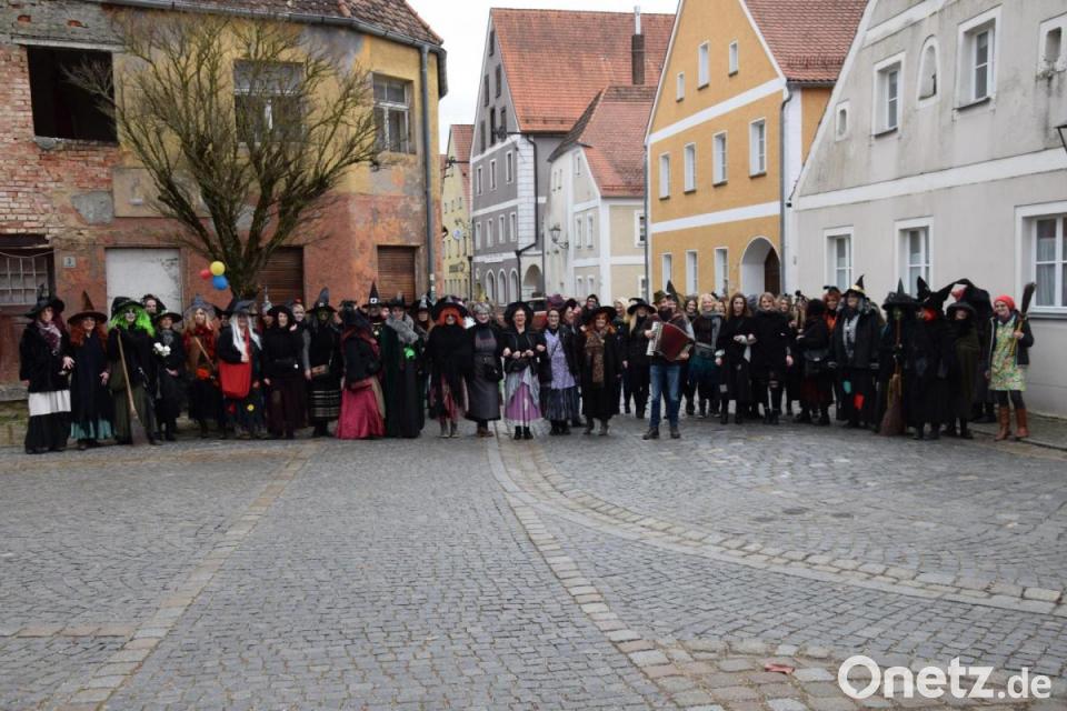 Treffpunkt war wie immer mittags um Oans beim Zöllist in der unteren Hauptstraße. Mit dabei war auch Florian Gröninger als Hausmusikant. Von der Zeit her wie beim Fischzug, nur lustiger geht es beim Hexenzug zu. Mit spitzem Hut, weitem Rock und drei Pullover drunter, mit wilder Mähne, schwarzen Zähnen und gruselig grün geschminkten Gesichtern machte sich der Hexenpulk auf den Weg durch den Markt. Die Weiber tanzten auf dem Katzenbuckelpflaster, als hätten sie gewachstes Parkett unter den Füßen, jagten manch neugierigem Mann hinterher, der sich recht unvorsichtig postiert hatte, um sich die Sache etwas genauer anzuschauen. Mit ihren Besen zeigten die Hexen den widerspenstigen Herren der Schöpfung, wo der Bartel den Most holt. "So alt wie der große Kollege Fischzug ist unser Hexentreiben nicht, aber genau so schön", erzählt Martina Wiesner, „mit dem Unterschied, dass man bei uns immer reden, tanzen und lustig sein kann, während dies alles beim Fischzug mit einer Strafe von fünf Euro belegt wird.“