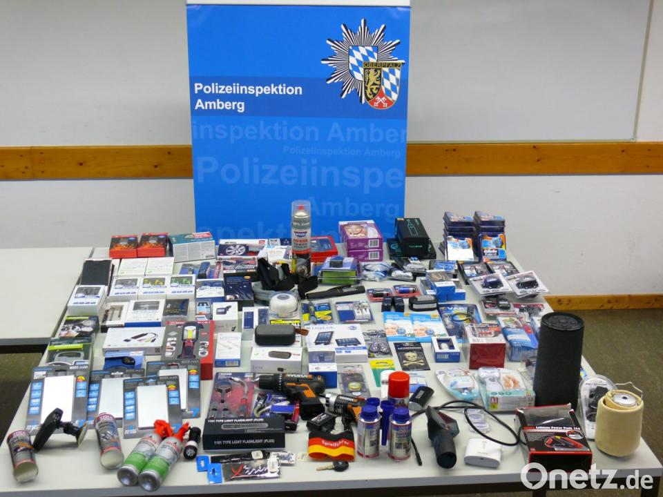 Der Wert der aufgefunden Gegenstände, die aus verschiedenen Verbrauchermärkten stammen, summiert sich auf rund 1500 Euro. Die Polizeiinspektion Amberg ermittelt nun wegen Diebstahl, Urkundenfälschung, Fahren ohne Fahrerlaubnis und Verstoß gegen das Waffengesetz.