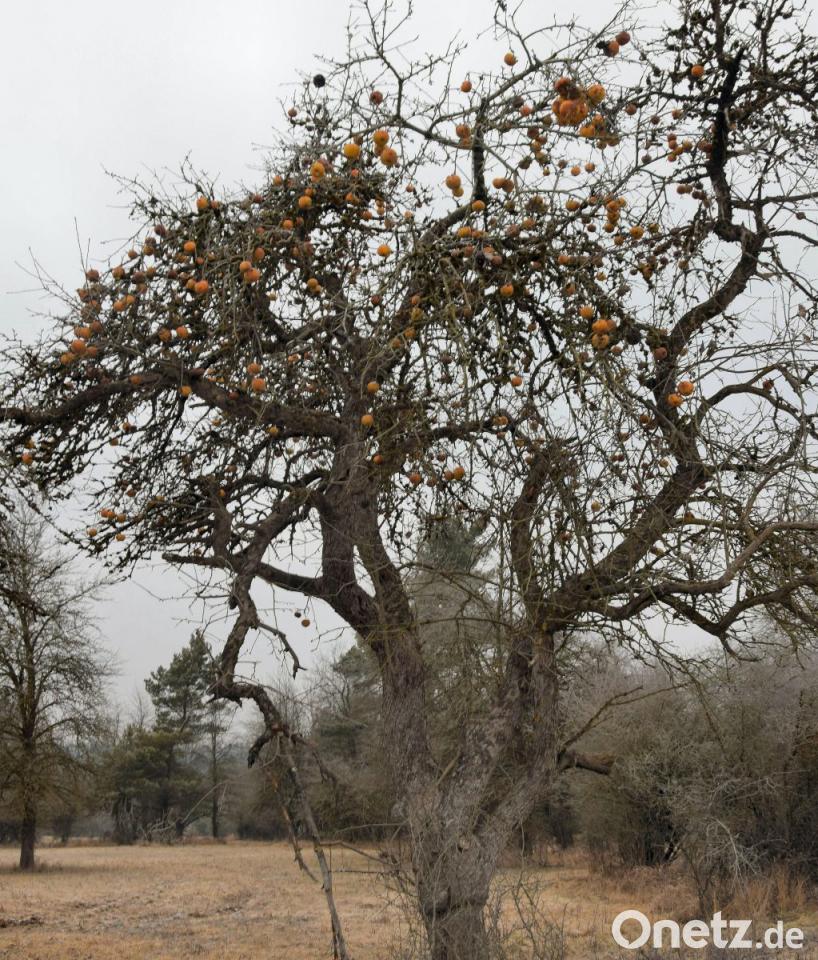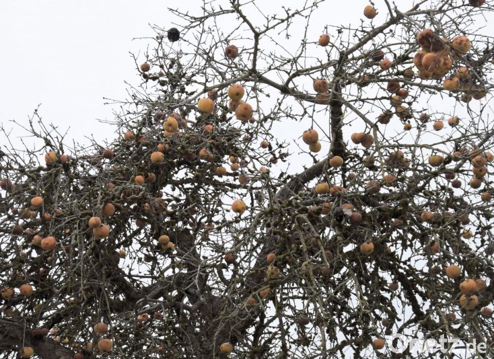Die Äpfel hängen allesamt noch in den Ästen und werden wohl erst beim nächsten Wintersturm abfallen. Nutznießer sind dann auf alle Fälle das Rotwild und die Wildschweine. Wie der Obstexperte Bernd Weber, Pomologe vom Umweltbüro der US- Army, erzählt, handelt es sich um eine sehr alte Apfelsorte, die hier überlebt hat.