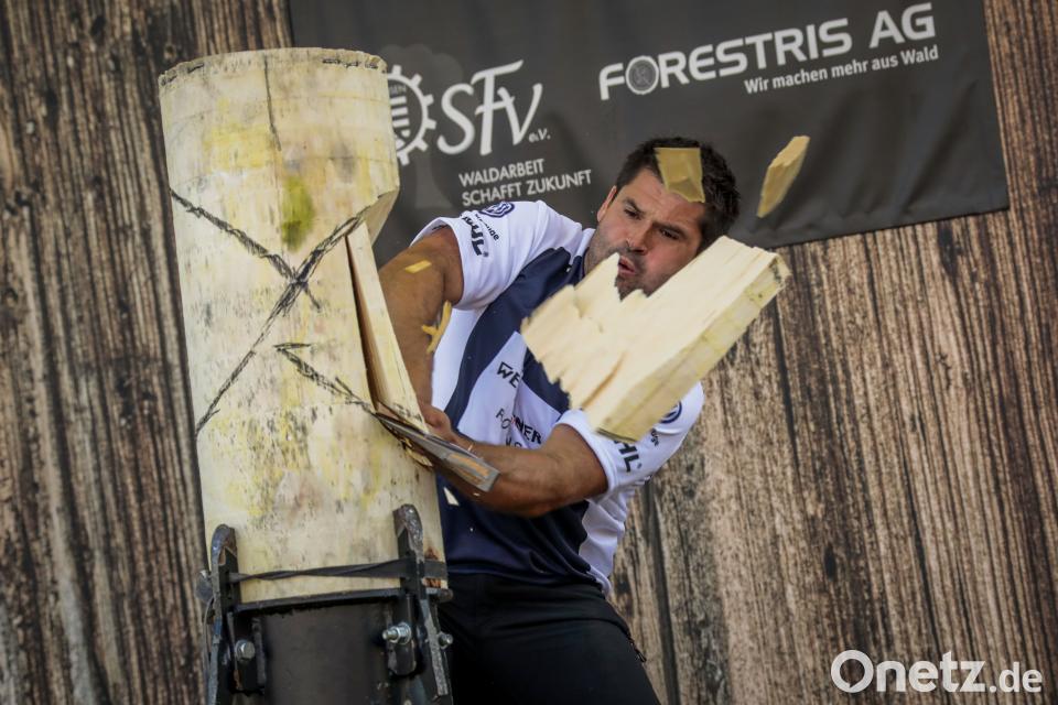 Alter und neuer Deutscher Meister im Sportholzfällen ist Robert Ebner aus Gaggenau-Hörden. Der Titelverteidiger setzte sich mit Axt und Säge gegen den Zweitplatzierten Danny Mahr aus Sinntal und den Winterberger Dirk Braun durch.