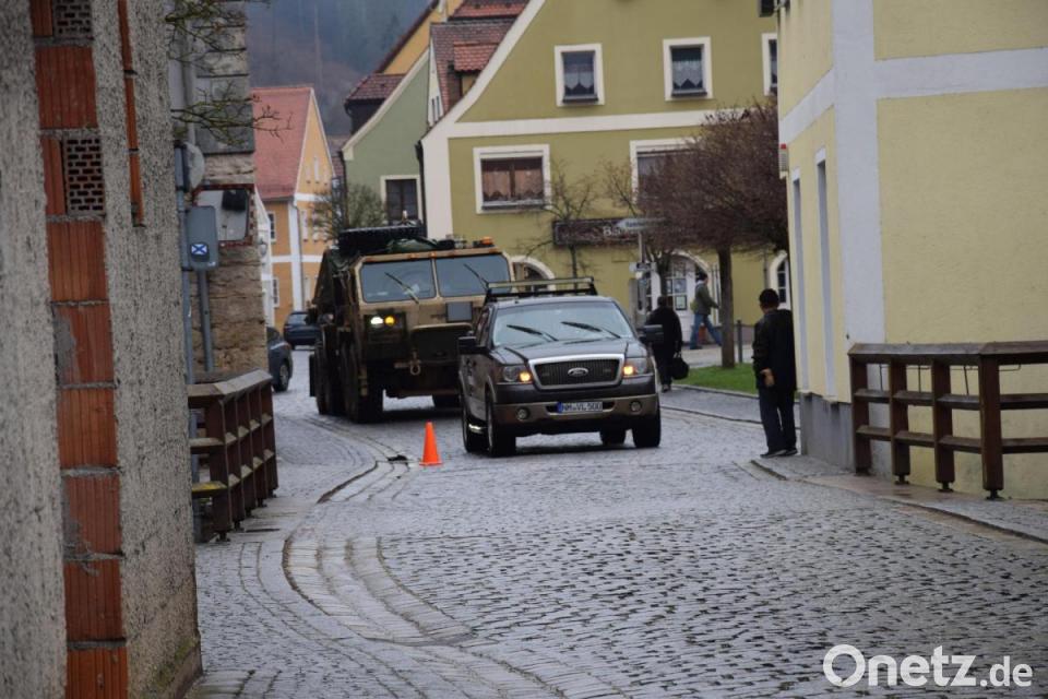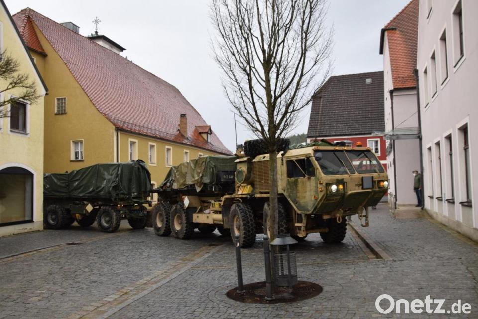 Wie soll das jetzt weitergehen? Das fragen sich die Schmidmühlener und Bürgermeister Peter Braun zu den ungewollten Manöversituationen. Gerade einmal sechs Wochen sind ist es erst her, dass sich ein mit etwa 3000 Gallonen Treibstoff beladener Tankwagen der US Army in der Flutmulde der Hochwasserfreilegung in Schmidmühlen festgefahren hatte. Doch jetzt ist ein ähnliches Dillema schon wieder passiert: „Eine neue Übung, ein neuer Fauxpas mit Fahrzeugen der US Army in Schmidmühlen“, sagen die Schmidmühlener. Am Samstagvormittag ging nichts mehr im Markt Schmidmühlen, weil zwei schwere Militärtrucks vom Typ Oshkosh die beiden Zufahrts-Strassen zum Markt blockiert haben.