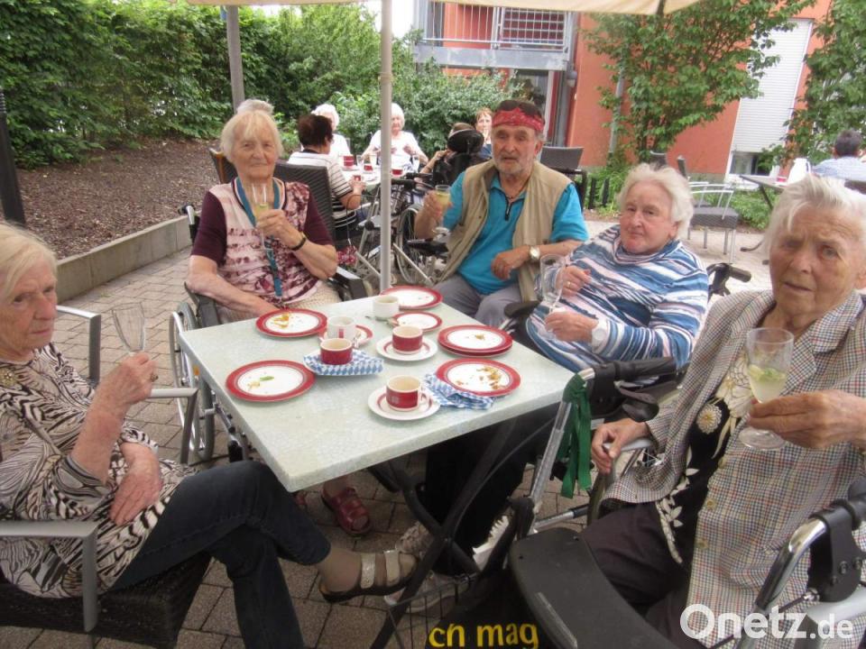 Bei idealem Wetter machten sich die fünf AsF-Küchlbäckerinnen auf der Heimterrasse an die Arbeit. Die Blüten wurden in den vorbereiteten Küchlteig getaucht, dann im heißen Fett knusprig und hellbraun gebacken. Der Duft der frischen, mit Puderzucker bestäubten Hollerküchln – insgesamt wurden 150 Exemplare gebacken - machte den Heimbewohnern sichtlich Appetit. Entsprechend groß war die Nachfrage nach dem nicht alltäglichen Schmankerl. Schließlich stehen die Hollerküchln das ganze Jahr nicht auf der Heim-Speisenkarte. Dazu gab es natürlich Kaffee, serviert vom Sozialdienstteam mit seiner Chefin Sifa Heldmann. Deren selbstgemachter alkoholfreier Hugo mundete den Seniorinnen und Senioren offenkundig ganz besonders. Abgerundet wurden die Gaumenfreuden durch einen von Bärbel Grützner selbstgemachten Holunderblüten-Sirup.