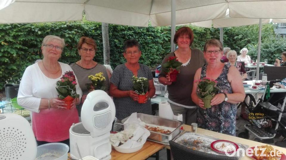 Die AsF-Frauen ernteten für ihre Backkünste allseits großes Lob: „So guate Hollerköichln hob’n ma scho lang nimmer gessen!“ Diese Meinung teilte uneingeschränkt auch Sozialdienst-Chefin Sifa Heldmann. Sie bedankte sich bei allen, die zum Gelingen des Hollerfestes beigetragen haben. Für die fünf AsF-Frauen gab es als Dankeschön kleine Blumenstöckchen. Bärbel Grützner betonte abschließend, dass man mit dem Fest gerne Erinnerungspflege bei den Senioren und Seniorinnen betreiben wolle. In deren Kindheit und Jugendzeit habe der Holunder noch eine ganz wichtige Rolle in den Familien gespielt.