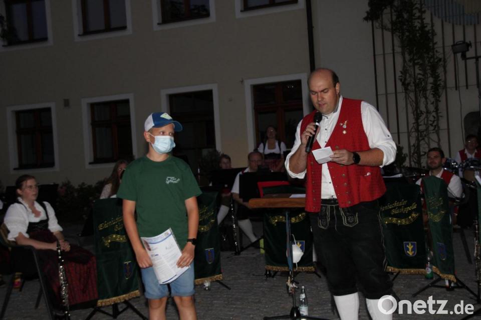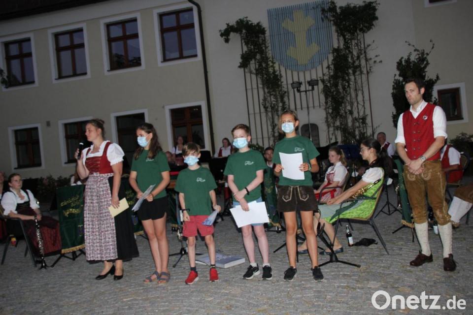 Die Ehenbachtaler Blaskapelle nutzte das Konzert auch, um dem Publikum erfreuliche Neuigkeiten aus dem Vereinsleben mitzuteilen. Judith Schlosser informierte, dass Hannah Schorner (Klarinette), Lukas Siegert (Alt-Saxophon), Severin Kellner (Alt-Saxophon), Charlotte Turner (Querflöte) und Logan Turner (Trompete) die Prüfung für das Juniorabzeichen als erstes offizielles Abzeichen im Bereich der Blasmusik erreicht haben. Dominik Strähl gab dann bekannt, dass man nach drei Jahren Ausbildung auf einem Instrument wissen wolle, wie sein Ausbildungsstand sei. Diese Möglichkeit biete das Musikleistungsabzeichen D1 (Bronze). Leopold Rom vom Nachwuchsorchester habe diese Prüfung für das Leistungsabzeichen D1 am Waldhorn mit Erfolg abgelegt. Und eine weitere erfreuliche Nachricht gab es: Bereits im Frühjahr erwarben durch eine Online-Schulung beim Nordbayerischen Musikbund Judith Schlosser, Manuela Meier, Michael Leitl und Johannes Pilarski die Qualifikation zur Abnahme der Juniorprüfung.