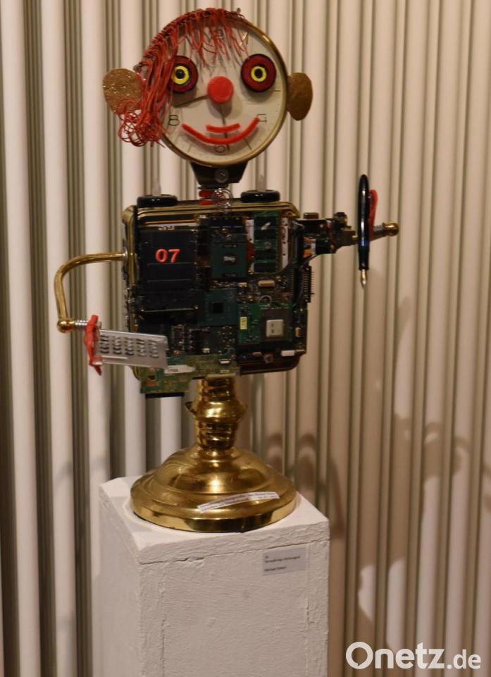 In der Ausstellung im Kulturstadl sind Collagen von Roswita Müller aus Schwabach zu sehen, die durch die geschickte Kombination von Farben und Elementen neue Sichtweisen auf Landschaften eröffnet. Auf den Kanarischen Inseln fand Hortense Kurth aus Neumarkt die Motive für ihre Aquarellbilder, die durch ihr harmonisches Spiel von Wasser und Farbe verzaubern. Ein weiterer Höhepunkt der Ausstellung sind die Plastiken von Michael Ritter aus dem Bereich Neumarkt, der aus Hausmüll faszinierende Skulpturen schafft. „Mit dem, was ich habe, schraube ich darauf los und bin oft selbst überrascht, was dabei herauskommt“, beschrieb der Künstler seine Herangehensweise.