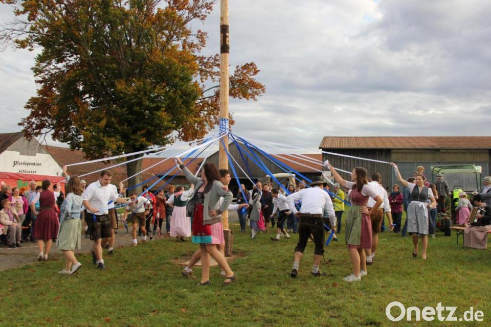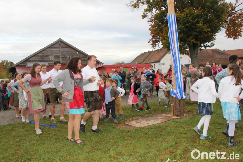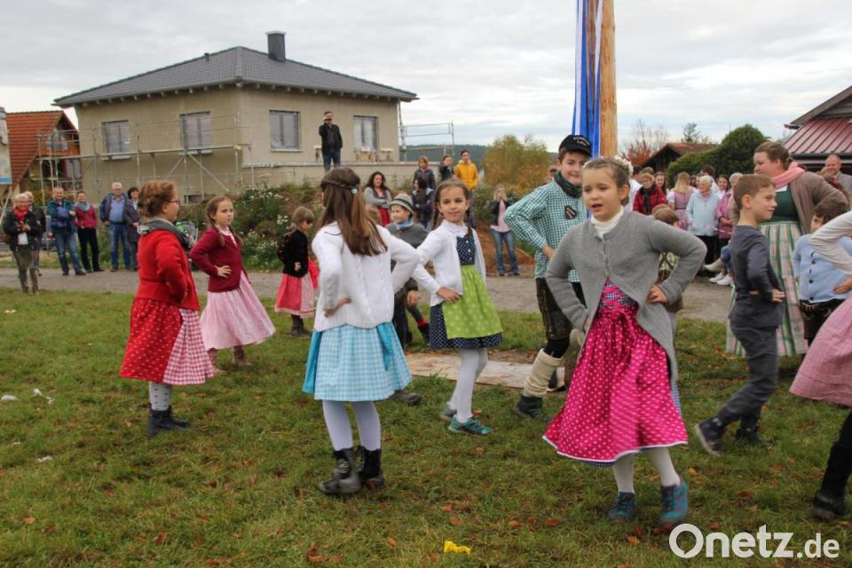 Dann gab es eine Premiere: Aufgrund des neuen Standorts konnte der Kirwanachwuchs unter Leitung von Manuela Fronhofer mit musikalischer Begleitung durch Ingrid Müller heuer erstmals um den Baum tanzen. Für eine große Überraschung sorgten die Kirwapaare, die einige Tänze mit dem Nachwuchs präsentierten, um dann den anspruchsvollen Bandltanz zu zeigen. Trotz eines zwischenzeitlichen „Verbandelns“ ernteten die Paare großen Applaus für ihre tänzerische Leistung, die eine Menge Konzentration forderte. Die Feuertaufe war damit bestanden.