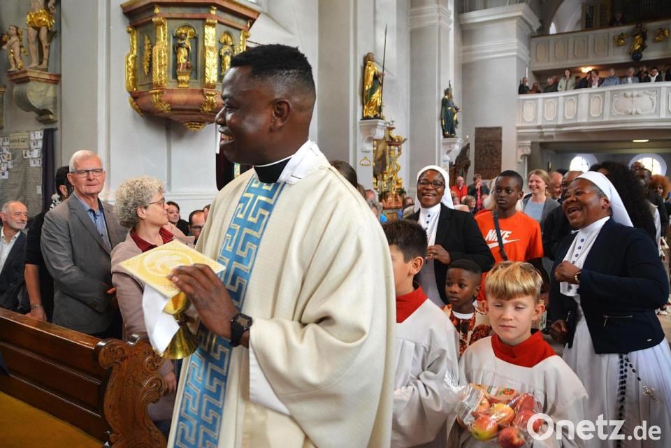 So hatte er sich seinen 40. Geburtstag vorgestellt. Ein volles Gotteshaus und afrikanische Klänge aus seiner Heimat Nigeria. Pfarrvikar Ndudi Kelechi Izuagba zelebrierte zusammen mit mehr als 25 nigerianischen Priestern und dem Ortsgeistlichen, Stadtpfarrer Helmut Brügel, den Festgottesdienst.