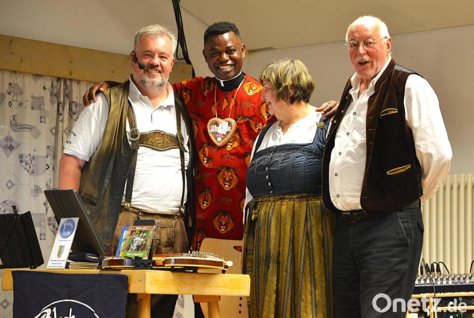 Die weltliche Feier fand dann im Vitusheim statt. Die Musik der „Blechernen Sait’n“ und afrikanische Rhythmen wechselten sich dort ab. Lang war das Spalier der Gratulantenschar. Auch zum großen Buffet mit afrikanischen Speisen hatte sich eine lange Schlange gebildet.