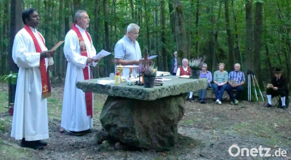 Alljährlich feiert der Heimat- und Volkstumsverein Ehenbachtaler aus Schnaittenbach am Steinplattl des 667 Meter hohen Buchberges eine Waldmesse. Über 40 Trachtler und Buchbergfreunde wohnten bei sonnigem Herbstwetter diesem von Stadtpfarrer Josef Irlbacher und Pfarrvikar Donald Michael zelebrierten Freiluftgottesdienst bei.
