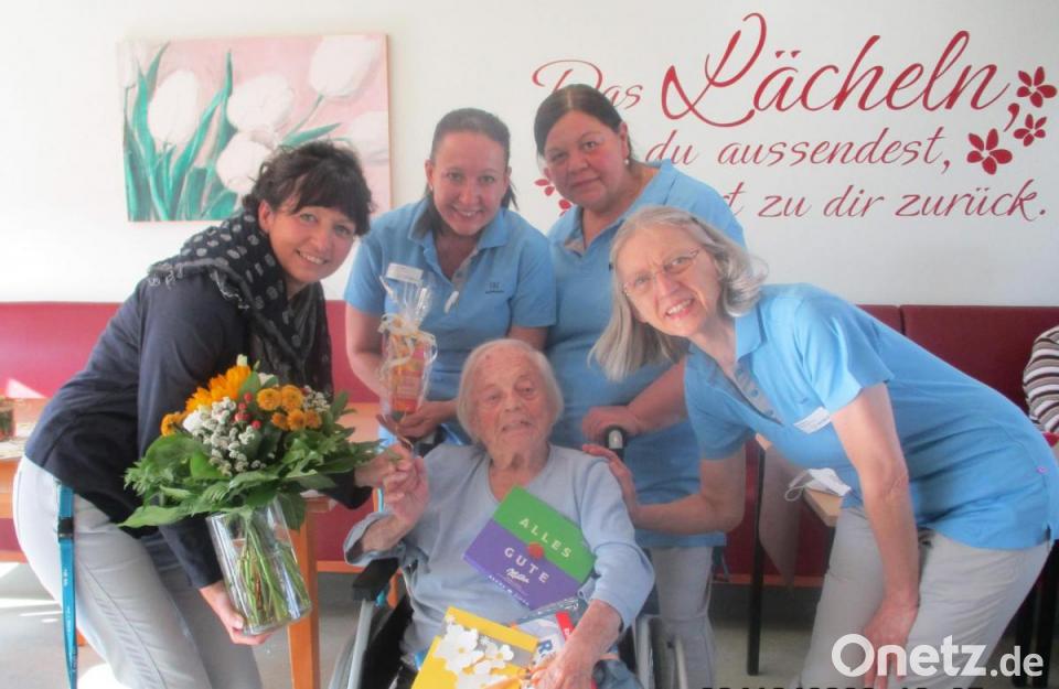 Kein Wunder, dass sich Therese Kountz aus Schnaittenbach über zahlreiche Glückwünsche der Mitbewohner und der Heimmitarbeiter freuen konnte, wurde sie doch 103 Jahre alt. Bereits am Vormittag wurde die Jubilarin im Gemeinschaftsraum des Evergreen-Heims mit einem Geburtstagslied überrascht. Einrichtungsleiterin Annett Schmerbauch unterstrich ihre guten Wünsche mit dem Überreichen eines Blumenstraußes. Am Nachmittag feierte das Geburtstagskind im Kreis der engsten Familie bei Kaffee und ihrer Lieblingstorte Schwarzwälder Kirsch.