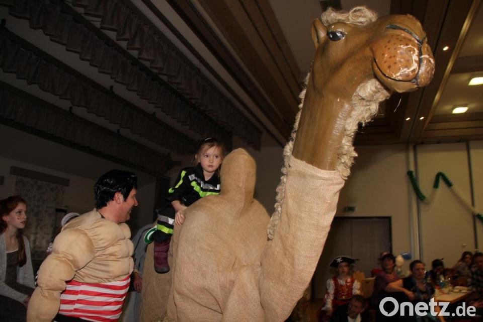 Seit Jahren bildet das Gastspiel der Kinderfaschingsgesellschaft Kleinseugastanien den Höhepunkt des Kinderfaschings. Die Kindergarde mit dem Prinzenpärchen Fiona I. und Michael I. marschierte zu zackiger Musik unter großem Applaus in den Saal ein. Der flotte Gardetanz brachte nicht nur die kleinen Seugastanier außer Atem, auch so manchem Zuschauer blieb angesichts der ausgezeichneten Leistung der Tänzerinnen die Luft weg. Die Kleinseugastanier hatten selbstverständlich wieder ihr Kamel Sulaika mitgebracht. Dessen Rechenkünste sorgten bei den kleinen Schnaittenbachern für Begeisterung, ebenso die Möglichkeit, auf dem Kamel durch den Saal zu reiten.