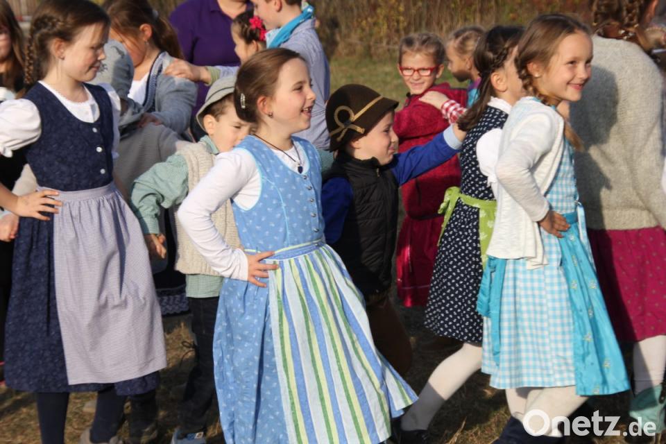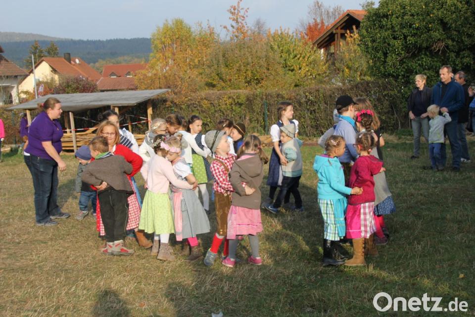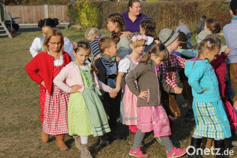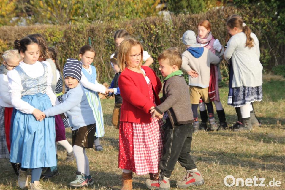 Die zwölf Paare aus dem Nachwuchs der Kirwaleut' konnten es kaum erwarten, bis der Baum nach rund 45 Minuten stand und sie ihren großen Auftritt beim Austanzen hatten. Die Kinder im Alter von zwei bis elf Jahren hatten die Tänze in fünf Proben mit Manuela Fronhofer intensiv einstudiert, so dass ihre Vorführung wunderbar klappte. Ingrid Müller unterstützte die kleinen Kirwapaare dabei musikalisch auf der Quetschen. Zum Kaffee gab es dann mit frisch gebackene Kücheln. Auch der Taubenmarkt stieß auf großen Zuspruch. Zum Ausklan heizte abends die Band Mir 3 und du den Gästen im vollen Kirwastodl richtig ein. Ein letzter Höhepunkt war die Verlosung des Kirwabaums.