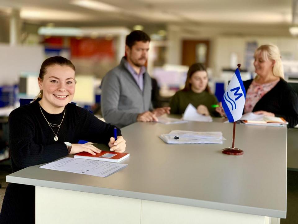 Doch erst einmal zurück zu den Aufgaben der Schifffahrtskaufleute: Sie kennen die internationalen Frachtmärkte, Häfen und Schifffahrtswege und schließen unter anderem Frachtverträge mit Kunden weltweit. Außerdem bearbeitet Theresa Haas mit ihren Kollegen Schadensmeldungen am Schiff oder der Ladung und wickelt den Schadensfall mit den Versicherungen ab. „Klar kennen wir auch die Aufgaben des Rechnungswesens, prüfen zum Beispiel eingehende Rechnungen und veranlassen Zahlungen“, sagt sie.