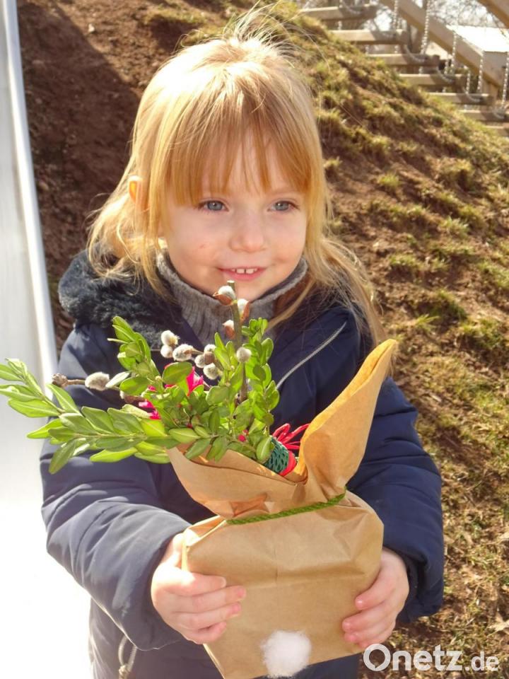 An einem Nachmittag war dann das große Suchen angesagt. Jeweils drei Kinder mit einer Begleitperson durften im Garten der Einrichtung ihr Glück versuchen. Und tatsächlich: Der Hase hatte für jedes Kind ein Nest versteckt, dazu gab es einen gesegneten Palmbuschen mit nach Hause. Die Kinder waren begeistert, den Kindergarten, das Personal oder auch ihre Freunde wiederzusehen, auch wenn sie Abstand halten mussten.