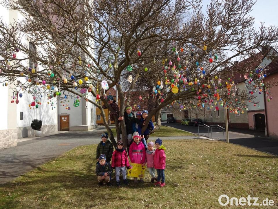 Viele Kinder können Corona-bedingt nicht in den Kindergarten St. Maria kommen. Trotzdem wollen sie alle auf unterschiedliche Art am Osterfest der Einrichtung teilnehmen. Um ein Zeichen an die ganze Gemeinde zu senden, sammelten die Kinder nach einem Aufruf an die Eltern, Großeltern und Nachbarn, aber auch alle anderen Interessierten viele bunt bemalte Ostereier. Mehr als 300 kamen so zusammen. Mit ihnen wurde die Magnolie vor der Stadtpfarrkirche österlich geschmückt. Der bunte Busch sendet nun frohe Ostergrüße an die ganze Gemeinde.