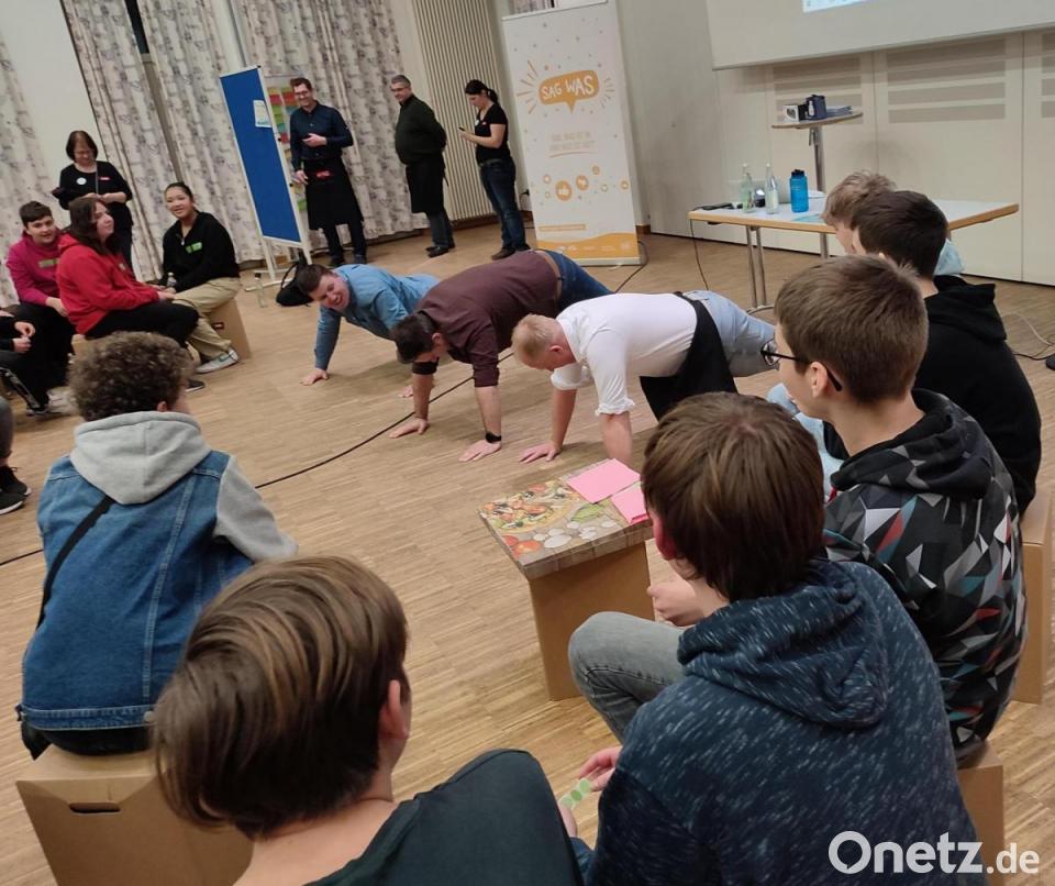 Mit den oben genannten Liegestützen wurde übrigens eine Spielschuld eingelöst, nachdem die Aufgabe, alle Jugendlichen nach Alter zu sortieren, gescheitert war. Solidarisch mit den Jugendbeauftragten übernahm Bürgermeister Marcus Eichenmüller für sie einige Liegestützen.
