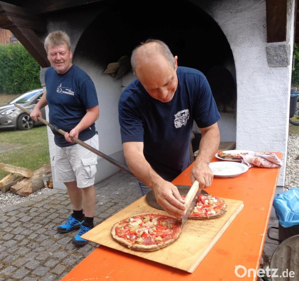 Mit zünftiger Blasmusik umrahmte die Blaskapelle Kunschir den Frühschoppen mit Weißwurstessen. Viele aus Schneeberg und der Umgebung ließen ihre Küche kalt und genossen den Kirchweihbraten, das Schnitzel und später das Kuchenbuffet der Feuerwehrfrauen. Heiß begehrt waren die Pizzas aus dem Steinbackofen. Die Bäcker hatten alle Hände voll zu tun, um die Kunden zu bedienen.
