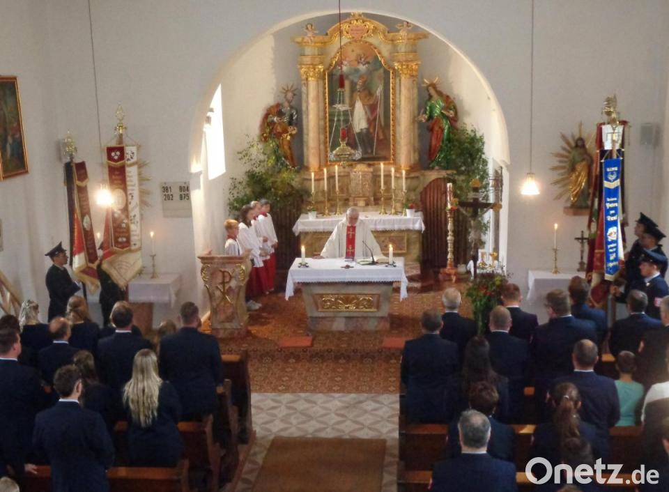 Die Feuerwehren aus Lind, Muschenried, Pondorf, Schneeberg und Winklarn zogen mit ihren Fahnenabordnungen in die festlich mit Birken geschmückte Filialkirche St. Wolfgang zum Festgottesdienst ein.