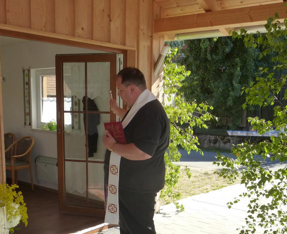 (mad) Mit einem Fest feierten die Schönauer am Samstag die Weihe der Dorfscheune und damit den - vorläufigen - Abschluss der Dorferneuerung. Nach der Eröffnung und Begrüßung durch Günther Auburger, amtierender Vorsitzender der Teilnehmergemeinschaft, gratulierte Pfarrer Markus Urban dem Dorf zu einem "schönen Gemeinschaftswerk". Der Text seines Evangeliums ("ein Haus auf festem Grund erbauet") bezog sich ebenfalls auf das neue Gebäude. Der Geistliche segnete das Kreuz, das künftig in der Scheune aufgehängt wird, sowie das Anwesen selbst.