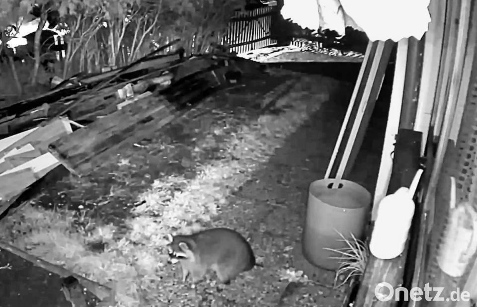 Aus der offenen Haustür heraus habe er einen kurzen Videomitschnitt über die Überwachungskamera gemacht. "Als der Waschbär noch rund zehn Meter von mir entfernt war, erschreckte er sich durch ein heranfahrendes Auto, drehte sich um und rannte weg."