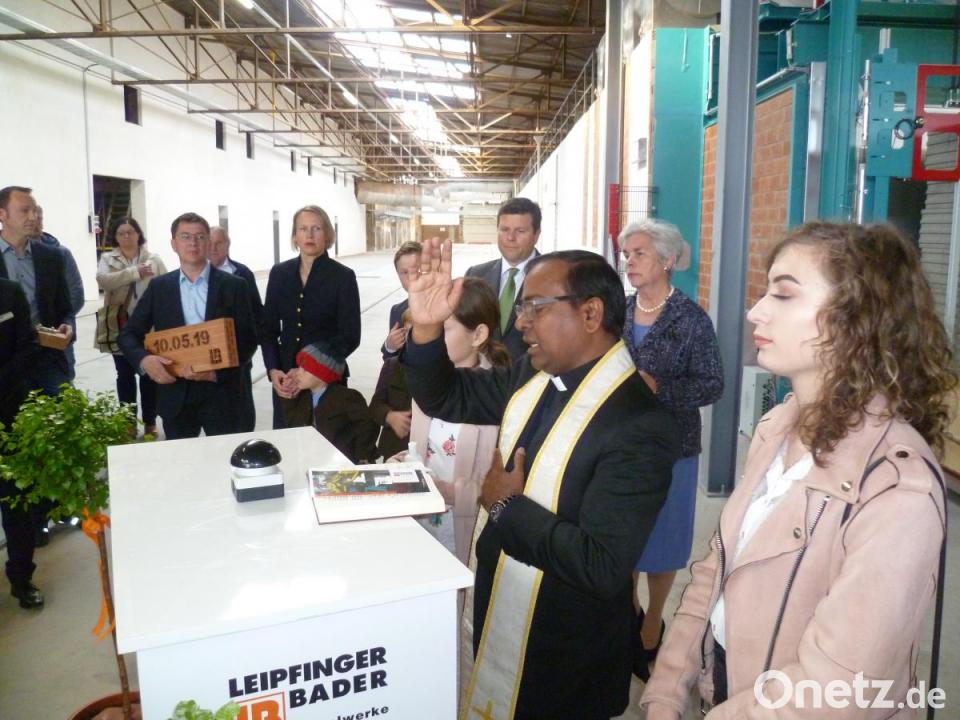 Dazu nannte er für zwölf Wochen Bauzeit einige bemerkenswerte Fakten: Rückbau von über 3 000 Tonnen Erdreich und Beton, Ein- und Ausbau von über 800 Meter Gleisen und Einbringen von knapp 1500 Kubikmeter Beton. Zur Erinnerung überreichte er eine Deckenrandschale mit dem Datum 10.5.2019 als versöhnenden Ersatz dafür, dass man beim Betonieren im frischen Beton das Datum nicht eingeprägt hat. Diese erhält einen Ehrenplatz an der Ofenwand. Dort segnete Pfarrvikar Hrudaya Kumar Madanu im Beisein der Besitzerfamilie und der Ehrengäste die neue Anlage. Gemeinsam drückten sie zum Abschluss der Feierlichkeiten den symbolischen Startknopf.