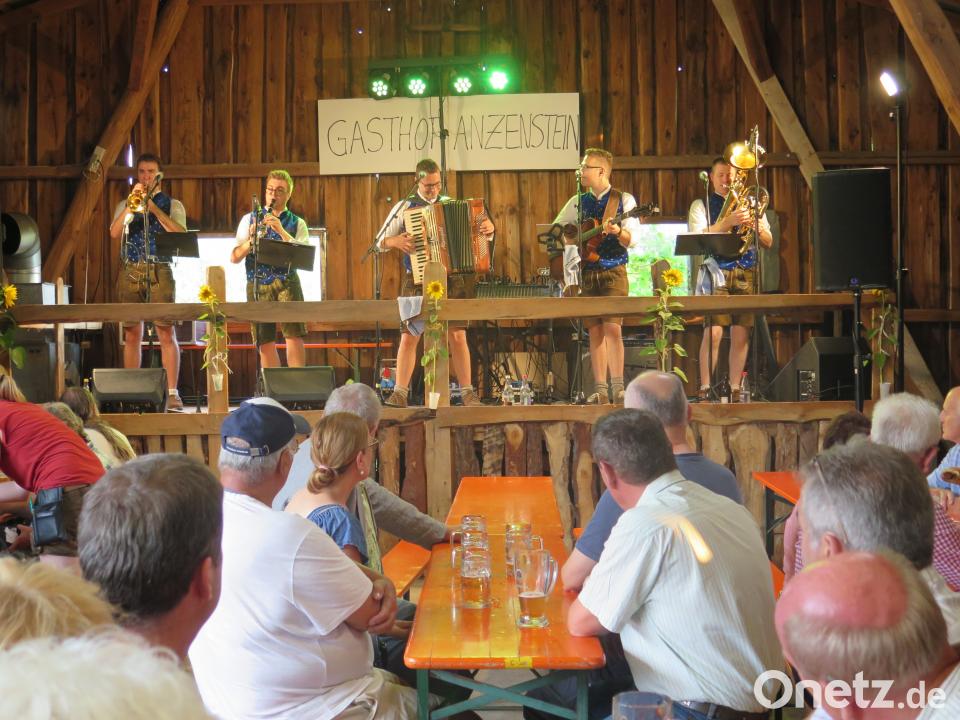 (jzk) Volksmusik vom Feinsten bot die Live-Band "Power Hoch 5" beim Sommernachtsfest im Gasthof Anzenstein. Freunde der Obkrainer aus dem Kemnather Land hatten die fünf Musikanten aus der Gemeinde Ursensollen im Landkreis Amberg-Sulzbach für einen Auftritt in der Scheune gewonnen. Mit ihrem Slogan "Junger Schwung aus der Oberpfalz" hatten sie nicht zu viel versprochen.