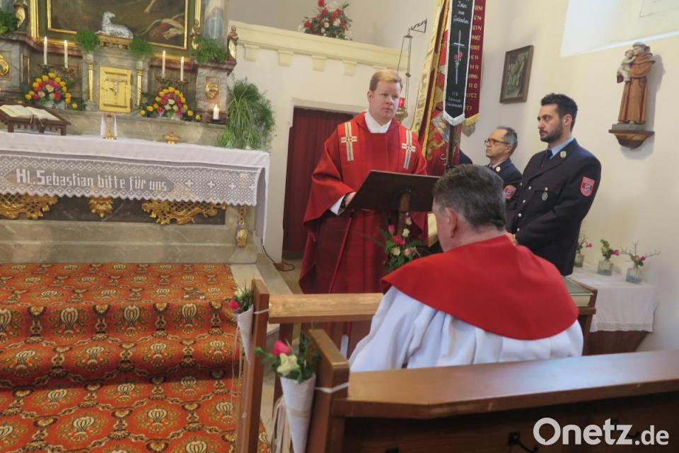 Vor der Sebastiansmesse geleitete die Blaskapelle unter Leitung von Veronika Krauß die Gottesdienstbesucher und Vereine zur Kirche. Dort hatten sich die Gläubigen bereits zum Sebastiansamt versammelt. Die beiden Bürgermeister Werner Nickl und Hermann Schraml nahmen mit einigen Stadträten ebenfalls am Gottesdienst teil. Fahnenabordnungen der Feuerwehr sowie der Krieger- und Soldatengemeinschaft Schönreuth hatten im Altarraum Aufstellung genommen. Mesnerin Barbara Dötterl hatte das Gotteshaus wieder schön geschmückt. Sie trug auch die Lesung vor. Markus Lehner und die Seniorministranten Guntram Lauber, Oswald Dötsch und Anton Schinner verrichteten den Dienst am Altar.
