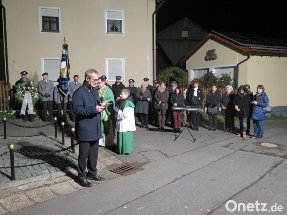 Zuvor hatte der Geistliche in der Filialkirche einen feierlichen Gedenkgottesdienst zelebriert. "Wir brauchen die Erinnerung, denn im Vergessen liegt eine große Gefahr." Vergessen führe zu Vernichtung von Menschenleben, Gewalt, Vandalismus, Rassismus, Fremdenhass und Intoleranz. "Dagegen müssen wir ein Zeichen setzen", mahnte Amschl. Im Altarraum standen die Fahnenabordnungen der Feuerwehr sowie der Krieger- und Soldatenkameradschaft Schönreuth. Pfarrgemeinderatssprecherin Sigrid Reger-Scharf Sigrid Reger-Scharf trug die Lesung und die Fürbitten vor.
