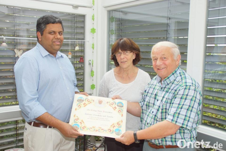 Von den Eheleuten Betty und Andreas Wirnshofer, bei denen er während seiner Urlaubsvertretungen in den vergangenen Jahren am häufigsten Gast war, verabschiedete sich Pater Joseph mit einer Urkunde. Dokumentiert ist auf dem Schriftstück der Apostolische Segen des Heiligen Vaters Franziskus für diese Familie, die für den Priester jederzeit Ansprechpartner war.