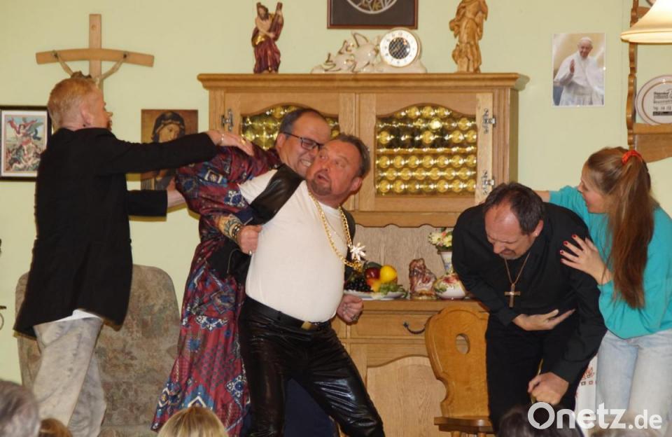 Wie nach den bisherigen Aufführungen von den Besuchern zu hören war, war diese Komödie "schon etwas Besonderes". Dieser Meinung schlossen sich auch Pfarrer Wolfgang Dietz, Pfarrer Christian Rahm (Aiterhofen) und Eslarns Pfarrer Erwin Bauer an, die sich das Spektakel auf der Bühne nicht entgehen ließen. Zu den beiden letzten Aufführungen lädt die Kolpingsfamilie am Freitag/Samstag, 4./5. Januar, jeweils 20 Uhr, ins Caritashaus ein.