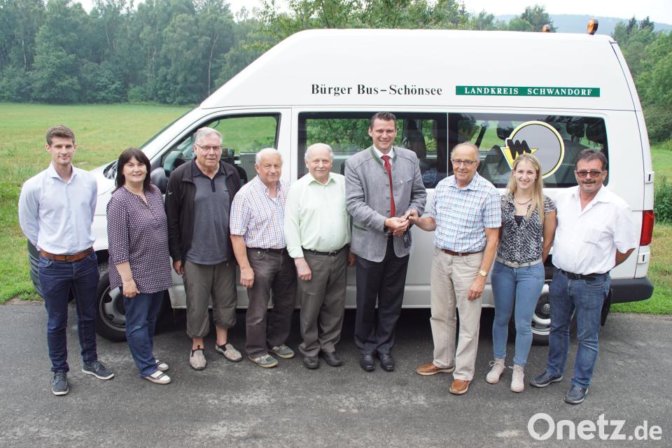 VG-Vorsitzende Birgit Höcherl hatte zur Schlüsselübergabe an den neuen Busfahrer an die Landkreisgrenze eingeladen. Im Grenzwirtshaus Gerstmeier begrüßte die Schönseer Bürgermeisterin die Busfahrer auch namens ihrer Kollegen Manfred Dirscherl (Weiding) und Gerald Reiter (Stadlern). Anwesend waren neben Landrat Thomas Ebeling auch der Sachbearbeiter am Landratsamt, Dominik Hauser, und Magdalena Knott, Koordinatorin in der VG. Höcherl dankte Erwin Hunger für seine Bereitschaft, das Bürgerbus-Team zu verstärken und betonte: "Der Erwin füge sich bestimmt ganz gut in die Mannschaft ein".