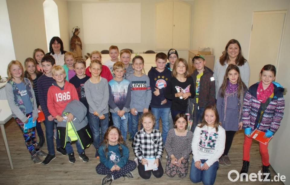 Mit einem Blumenstrauß bedankten sich die Kinder bei Birgit Höcherl für die vielen Informationen und nahmen von ihr gerne Schokolade entgegen.