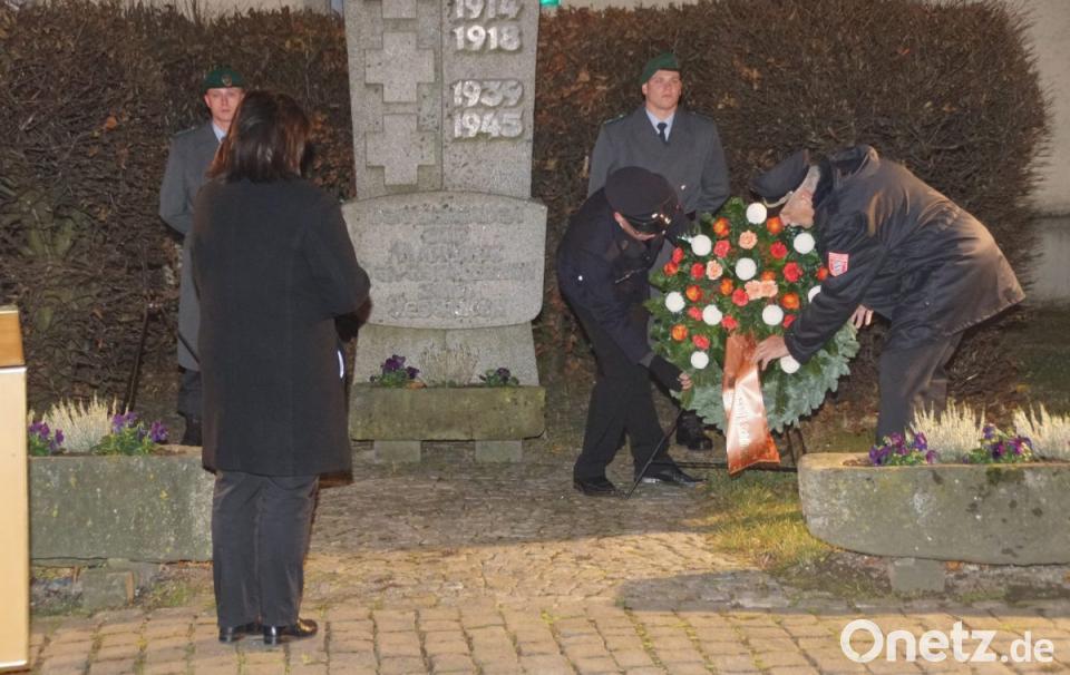 Die Kranzniederlegung durch die Bürgermeisterin, dem Vertreter der Bundeswehr und der Krieger- und Soldatenkameradschaft am Kriegerdenkmal unterstrich die Ehrung der Kriegsopfer. Mit den Musikstücken vom "Guten Kameraden" und dem "Deutschlandlied" endete, wie bereits am Freitag in Dietersdorf und am Samstag in Gaisthal, die Gedenkfeier zum Volkstrauertag.