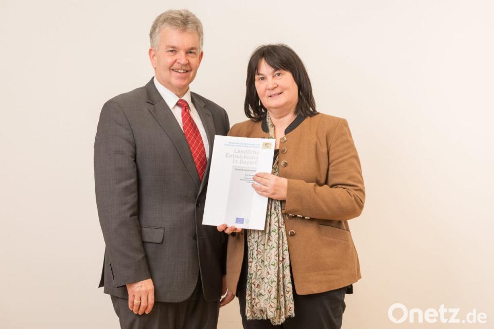 Ein Volumen von rund 65 000 Euro umfasst der Zuwendungsbescheid, den Ministerialdirektor Hubert Bittlmayer, Amtschef am Bayerischen Staatsministerium für Ernährung, Landwirtschaft und Forsten, am Montag an die Schönseer Bürgermeisterin überreichte. Dieser ist gedacht für die Umsetzung des Dorferneuerungsprojekt in Schwand.