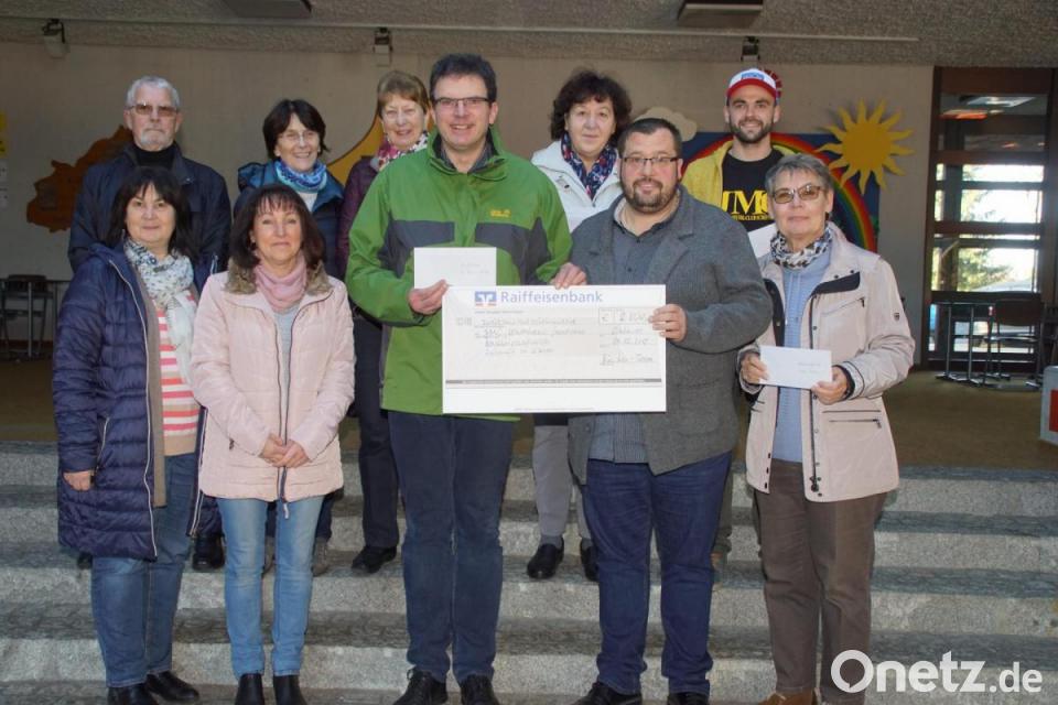Pfarrer Wolfgang Dietz für den Kindergarten, Rektor Thomas Troidl für die Grundschule, Sonja Toleikis für die "Nachbarschaftshilfe", Fabian Grötsch für den Jugend- und Musikclub und Maria Sterr für "Zukunft in Würde - Indienhilfe" nahmen die Spenden dankend entgegen.