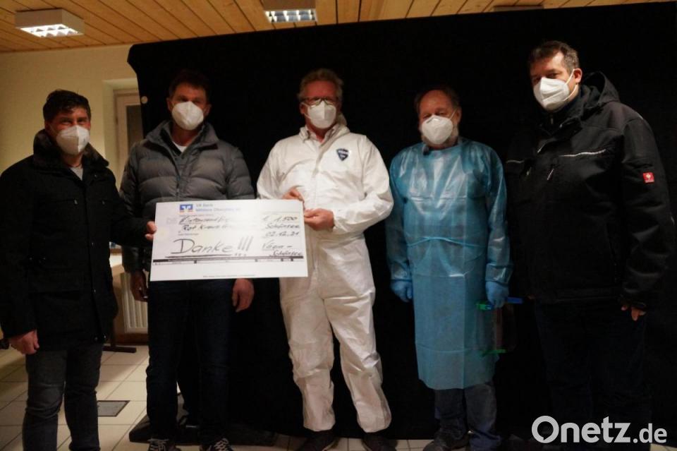 Zu einem freudigen Anlass kamen VG-Vorsitzender Gerald Reiter und sein Schönseer Bürgermeisterkollege Reinhard Kreuzer sowie der stellvertretende Bürgermeister der Gemeinde Weiding, Christian Ring, in das Rot-Kreuz-Haus. Im Gepäck hatten sie einen Scheck über 1500 Euro, der an Bereitschaftsleiter Hans Eichstetter und seinen Stellvertreter Josef Kreuzer übergeben wurde.