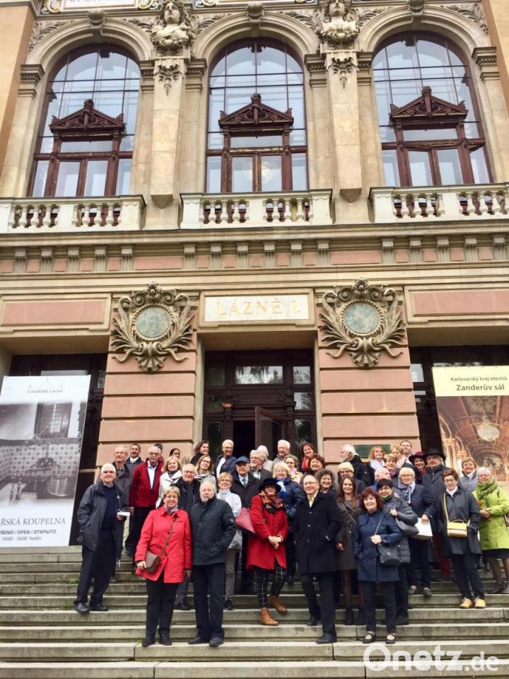 Vor dem Konzert besuchte die 50-köpfige Reisegruppe das 1895 eröffnete Kaiserbad, ein nationales Kulturdenkmal. Wie das Stadttheater wurde es nach Plänen des berühmten Wiener Architekten-Duos Ferdinand Fellner und Hermann Helmer zwischen 1893 und 1895 erbaut. Imposant und erst seit 2010 für Besucher geöffnet ist der Zander-Saal - benannt nach dem damals berühmten Bäderarzt Dr. Zander. Der Saal beeindruckt mit seinen Marmorsäulen, Stuckdecken, Wandmalereien und Kristalllüstern - Kulisse für den James Bond Film "Casino Royal".
