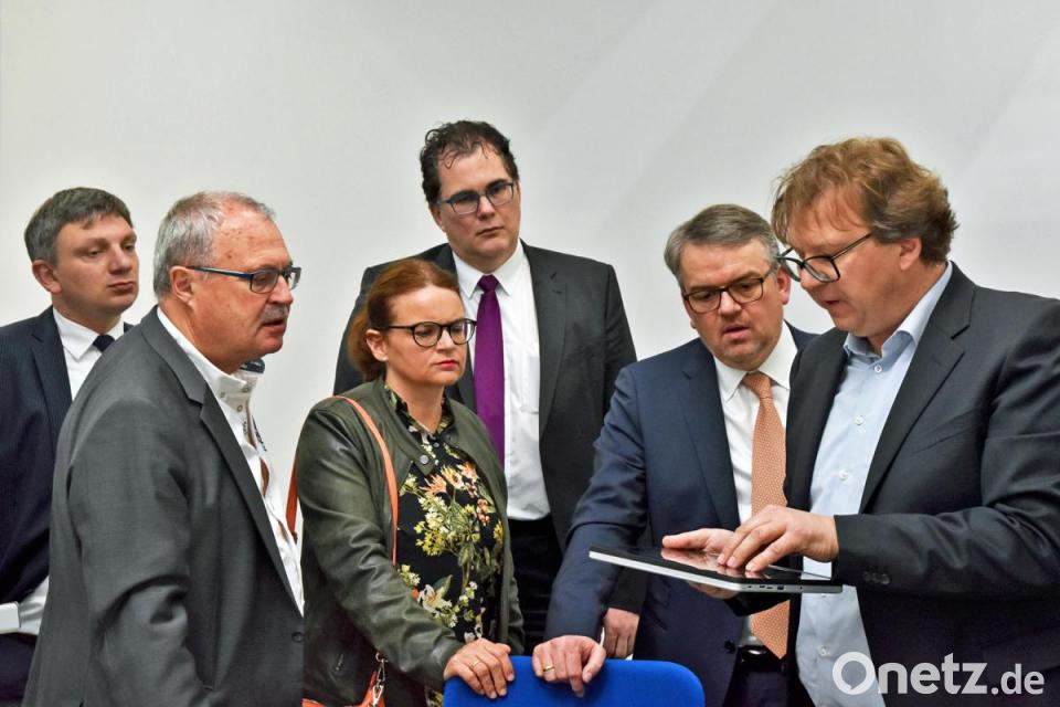 Im Vorfeld der Sitzung besichtigten die Gremiumsmitglieder das 1935 gegründete international tätige Unternehmen der Familie Irlbacher. Die Irlbacher Blickpunkt Glas GmbH verarbeitet Spezialgläser unter anderem für Bedienfelder von Haushaltsgeräten, Gebäudetechnik, Kaminöfen und Leuchtmittel. Das Unternehmen mit inzwischen 645 Mitarbeitern hat sich als Spezialanbieter für Elektronik auf Glas etabliert. Als Geschäftsführerduo beweisen die Brüder Günther und Stephan Irlbacher in vierter Generation die Innovationsstärke im ländlichen Raum. Gemeinsam mit einem Unternehmenskunden entwickelten sie beispielsweise das weltweit erste Blinden-Tablet. Durch Eingaben verschiedener Kombinationen über gefräste Mulden in der Glasoberfläche kann der Benutzer Nachrichten schreiben. Eine mechanische Leiste im unteren Bereich des Tablets ermöglicht durch variable Erhöhungen das Lesen von Texten in Blindenschrift. Nur einer von jährlich 11 500 kundenspezifischen Wünschen. Um diese zu erfüllen, entwickelt das Unternehmen nicht nur das Produkt, sondern auch die Maschinen, um es herzustellen.