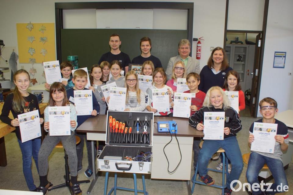 Lehrerin Theresa Reiter freute sich darüber, dass so viele Kinder die Möglichkeit zur Teilnahme am Basiskurs "Schüler entdecken Technik", eine sinnvolle Ergänzung zum Lehrplan im "Heimat- und Sachkundeunterricht", nutzten und die sonst freien Nachmittage im Werkraum der Schule verbrachten.