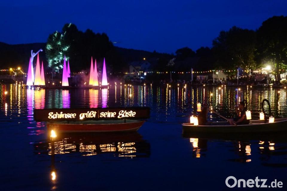 In diesen Stunden nutzten die Gäste die Zeit zum Kaffeetrinken, griffen bei dem reichhaltigen Angebot an Speisen und Getränken zu oder schlenderten einfach am Kurparkareal zwischen Hahnenweiher und Wasserrad. Da begegneten ihnen Zauberer, Seifenblasenkünstler und Stelzengeher, während sich die Trommelgruppe "Sarara" immer wieder durch die Gäste trommelte. Beim CeBB und auf der Bühne am Wasserrad zeigten Tanzgruppen aus Weiding und Oberviechtach ihr Können, und heimsten genauso viel Applaus ein wie die Teilnehmer am traditionellen Fischerstechen auf dem Hahnenweiher. Bei Einbruch der Dunkelheit zauberten viele bunte Lichter und schwimmende Fackeln eine romantische Stimmung rund um den Weiher. Zum großen Finale begrüßte Bürgermeisterin Birgit Höcherl die Gäste, darunter MdB Karl Holmeier und Landrat-Stellvertreter Arnold Kimmerl.