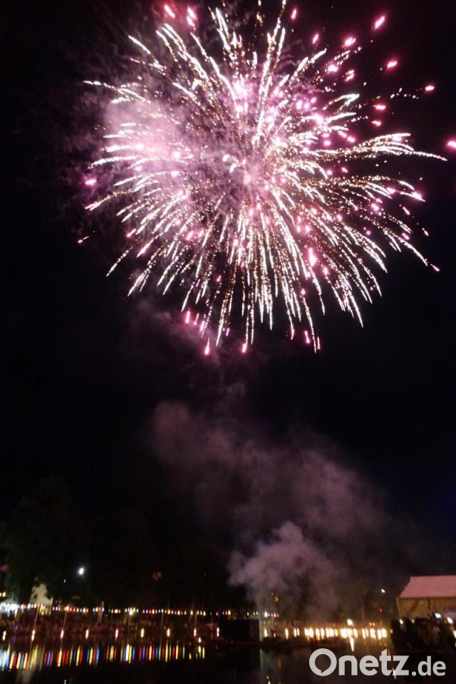 Die Gesangsgruppe "Montana" aus Roding stand in gleißendem Scheinwerferlicht auf der Insel, bevor traditionell das große Jubiläumsfeuerwerk als Höhepunkt den Schlussakkord setzte. Wer dann die Festlichkeit noch mehr auskosten wollte, dem verschlug es an die ein oder andere Bar oder vergnügte sich bei der DJ-Musik beim Wasserrad.