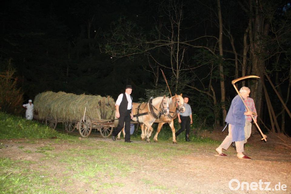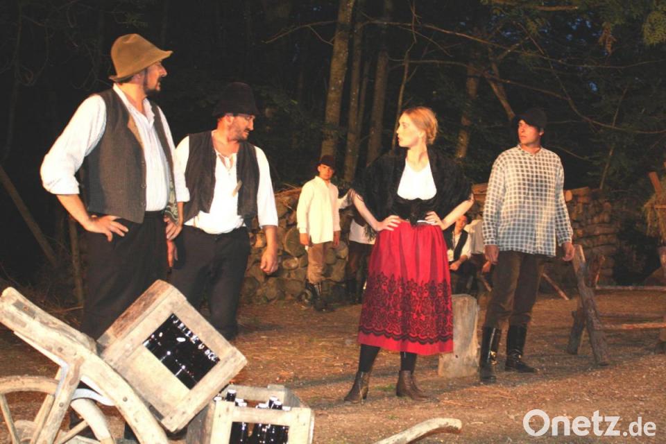 „Pascher - die Nacht der langen Schatten“ ist eine Geschichte, die unter die Haut geht!“, bekennt Schönsees Bürgermeisterin Birgit Höcherl, bei der als Vorsitzender des „Paschervereins Schönseer Land e.V.“ die Fäden zusammenlaufen. Die Zuschauertribüne mitten im Wald oberhalb von Friedrichshäng war bis auf den letzten Platz gefüllt, als die Spielleiterin das Premierenpublikum willkommen hieß, darunter Regierungspräsident Axel Bartelt, Landratstellvertreter Arnold Kimmerl und zahlreiche Bürgermeister der Region. Auch „den Eigentümer dieses besonderen Ortes“, Lothar Drachsler, begrüßte sie. Das Bergweber-Anwesen, mitten im Wald an der tschechischen Grenze gelegen, ist der ideale Spielort für diese Inszenierung. Die Scheune mit dem alten Blechdach ist Kulisse und Backstage zugleich. Haus und Hof des Anwesens bieten vor und nach der Aufführung sowie in der Pause die ideale Lokalität für die Verköstigung der Zuschauer mit pikanter Pascherwurst, saftigen Schmierkuchen und knusprigen Kücheln, während die Paschermusikanten fleißig aufspielen, die auch aus dem Handlungsgeschehen auf der Naturbühne nicht wegzudenken sind, etwa wenn sie musikalisch zum „Khannasfest“ einladen.