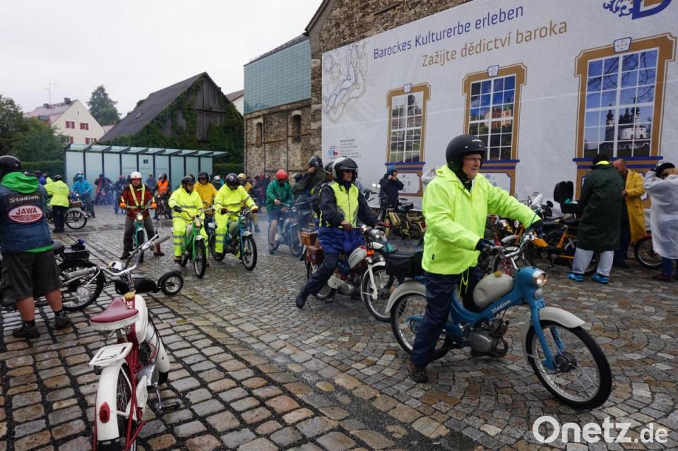 Regnerisch war es, als der Pulk von über hundert tschechischen Mopedfahrern durch die Hauptstraße ratternd den Parkplatz vor dem Centrum Bavaria Bohemia (CeBB) zu einer kurzen Verschnaufpause ansteuerte. CeBB-Leiterin Veronika Hofinger hieß die Gäste aus Tschechien in beiden Sprachen willkommen.