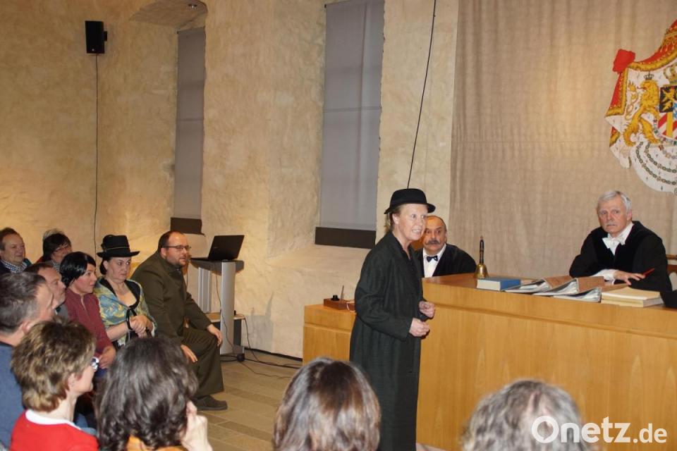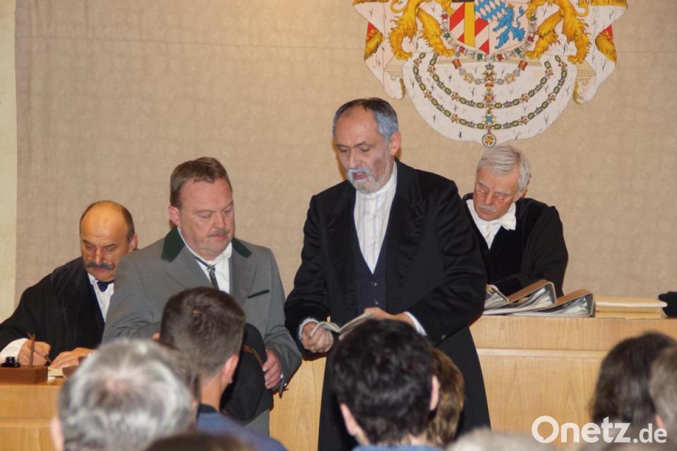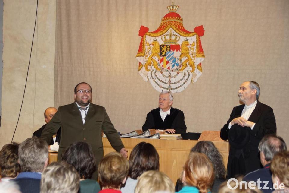Mit der aus der Fernsehserie bekannten Melodie eröffneten die Musikanten der Grenzland-Blaskapelle Dietersdorf in der Gewölbehalle des Centrum Bavaria Bohemia (CeBB) die Verhandlung. Gegenseitige Schuldzuweisungen der streitbaren Parteien musste sich der Herr Rat zu Beginn der Verhandlung anhören. Fragende Blicke gab es von ihm, ob der Anschuldigung des Diebstahls einerseits und auf der anderen Seite den vom Angeklagten behaupteten rechtmäßigen Besitz des Borstenviehs. Dieses hatte er sehr zum Ärger des Klägers für "bloß 50 Mark" weit unter dem Wert sogar verkauft.