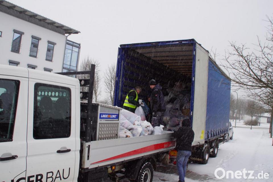 Nicht nur Kälte, Wind und Schneetreiben waren die Begleiterscheinungen, denen die Helfer bei der Altkleideraktion der Kolpingfamilie am vergangenen Samstag trotzen mussten. Kurzfristige technische Probleme mit Fahrzeugen, die Anforderung eines Streufahrzeugs, sowie die Alarmierung der Feuerwehr, zu der Fahrer und Helfer abrückten, beeinträchtigten die Sammlung im Schönseer Land. Am späten Vormittag zog KF-Vorsitzender Hans Herrmann am Parkplatz von Irlbacher-Blickpunkt-Glas mit fast sieben Tonnen gesammeltem Material dennoch ein positives Fazit. Er dankte der Bevölkerung und den Freiwilligen für die Unterstützung der Aktion sowie den Betrieben Flöttl, Irlbacher, Raiffeisen-Markt und Spichtinger, die Transportfahrzeuge zur Verfügung stellten.