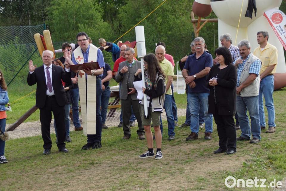 Pfarrer Wolfgang Dietz (Schönsee) und Pfarrer Norbert Schlinke von der evangelischen Kirchengemeinde Oberviechtach, sprachen Segensgebete für dieses Freizeitgelände. Dieses solle jederzeit spielend zwischen den Generationen Freude und ein segensreiches Miteinander bewirken.